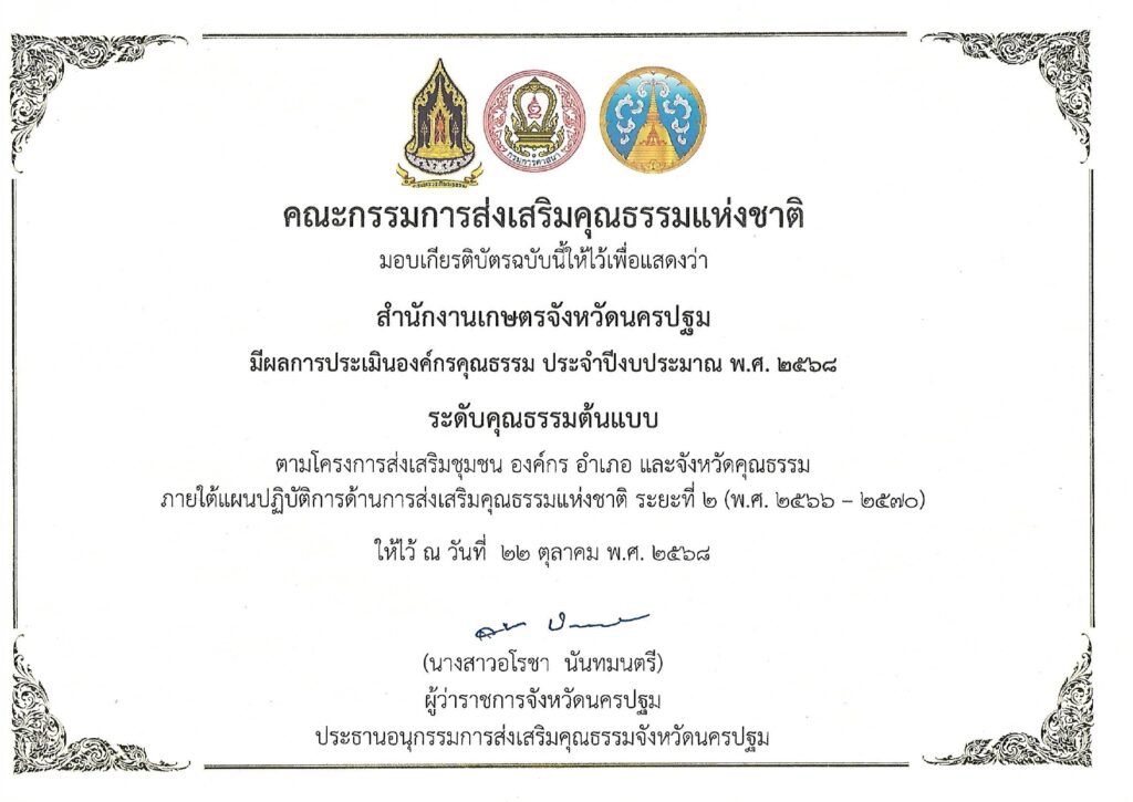 ประกาศสำนักงานเกษตรจังหวัดนครปฐม เรื่อง ประกาศผลผู้ชนะการจัดซื้อจัดจ้างหรือผู้ได้รับการคัดเลือกและสาระสำคัญของสัญญาหรือข้อตกลงเป็นหนังสือ ประจำไตรมาสที่ 1 (เดือน ต.ค. 68 – ธ.ค. 68)