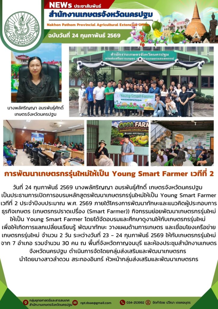วันที่ 24 กุมภาพันธ์ 2569 นางพลัศริญญา อมรพันธุ์ศักดิ์ เกษตรจังหวัดนครปฐม