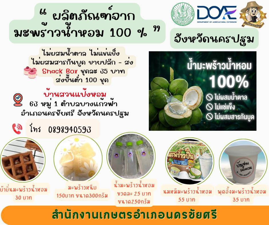 ขอเชิญชวนทุกท่าน…… อุดหนุนสินค้ามะพร้าวน้ำหอมจากเกษตรกรจังหวัดนครปฐม
