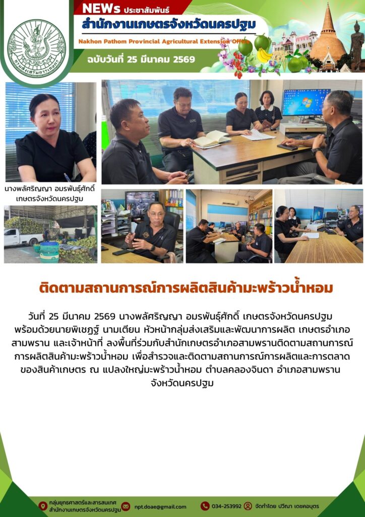 วันที่ 25 มีนาคม 2569 นางพลัศริญญา อมรพันธุ์ศักดิ์ เกษตรจังหวัดนครปฐม