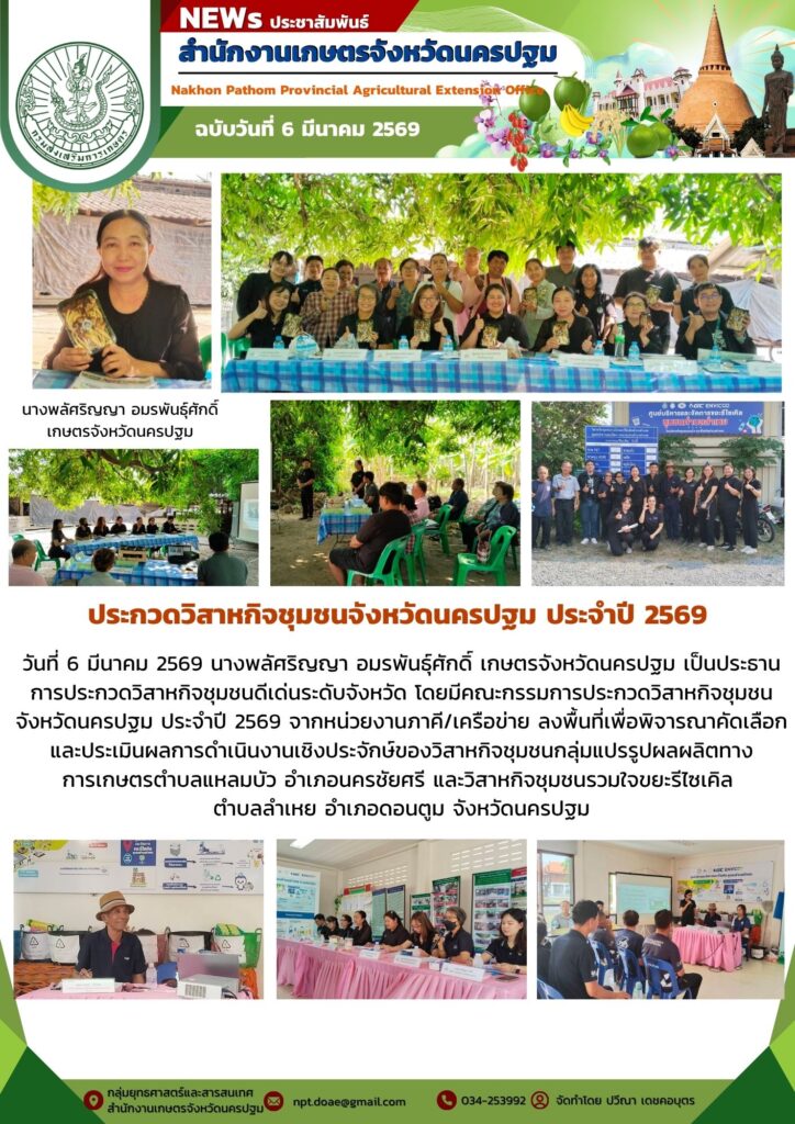 วันที่ 6 มีนาคม 2569 นางพลัศริญญา อมรพันธุ์ศักดิ์ เกษตรจังหวัดนครปฐม เป็นประธาน