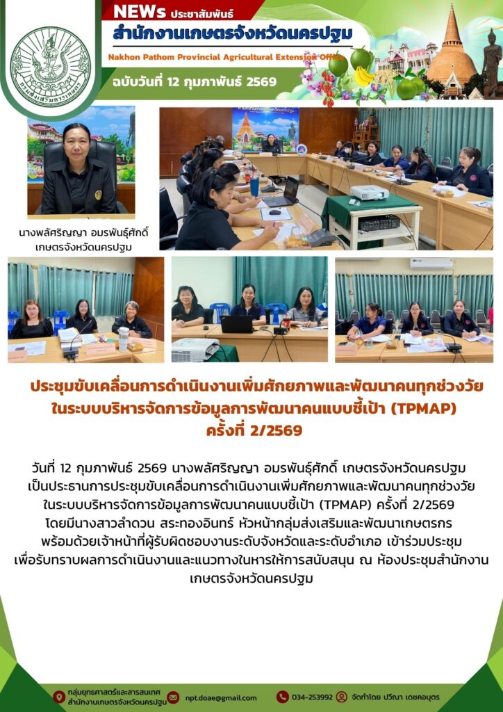 วันที่ 12 กุมภาพันธ์ 2569 นางพลัศริญญา อมรพันธุ์ศักดิ์ เกษตรจังหวัดนครปฐม