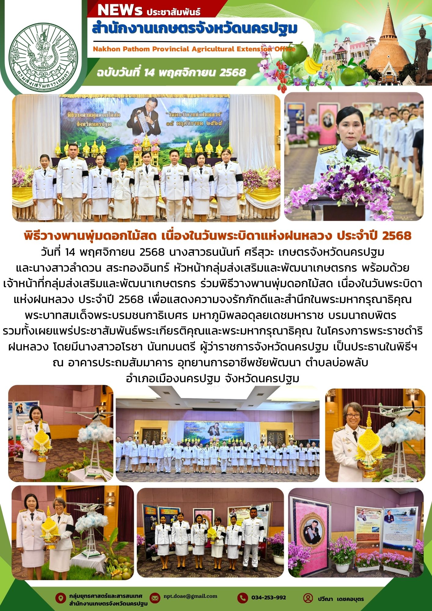 วันที่ 14 พฤศจิกายน 2568 นางสาวธนนันท์ ศรีสุวะ เกษตรจังหวัดนครปฐม