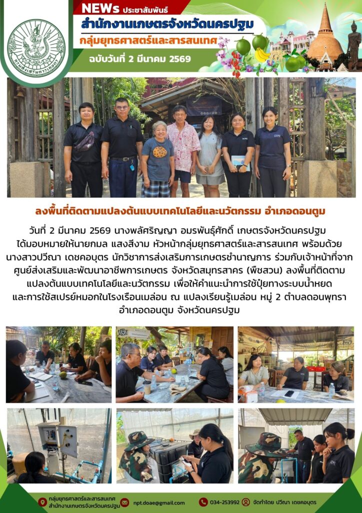วันที่ 2 มีนาคม 2569 นางพลัศริญญา อมรพันธุ์ศักดิ์ เกษตรจังหวัดนครปฐม