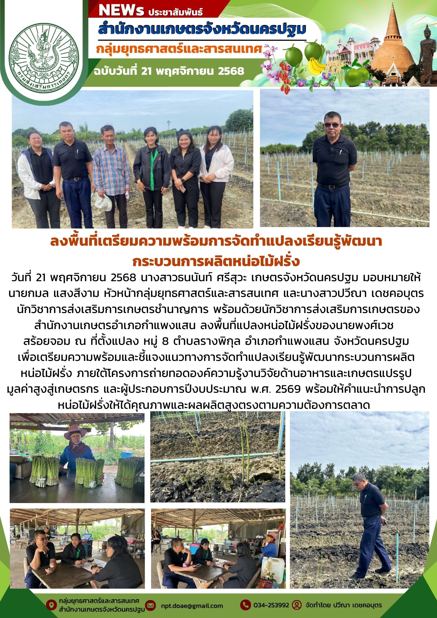 วันที่ 21 พฤศจิกายน 2568 นางสาวธนนันท์ ศรีสุวะ เกษตรจังหวัดนครปฐม มอบหมายให้