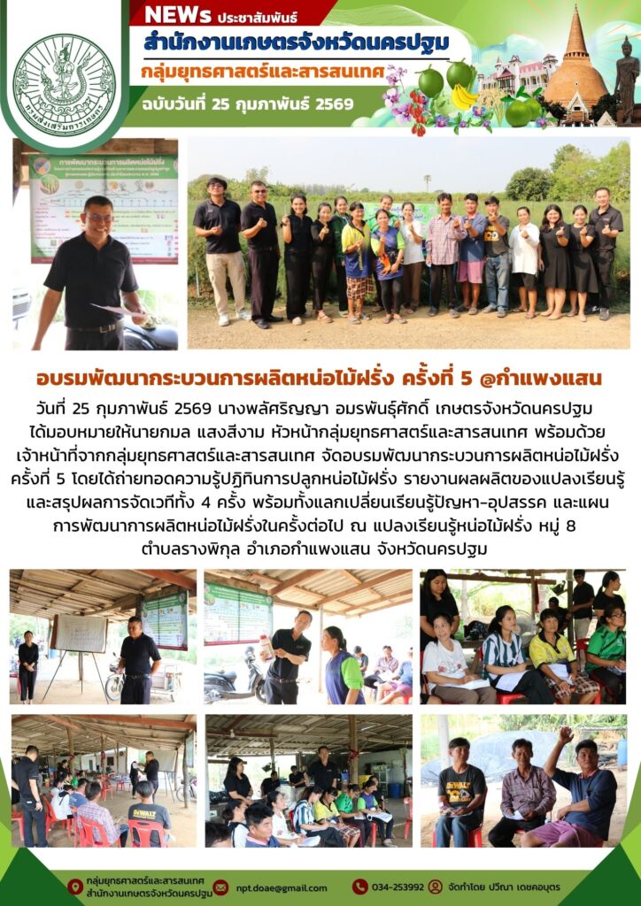 วันที่ 25 กุมภาพันธ์ 2569 นางพลัศริญญา อมรพันธุ์ศักดิ์ เกษตรจังหวัดนครปฐม