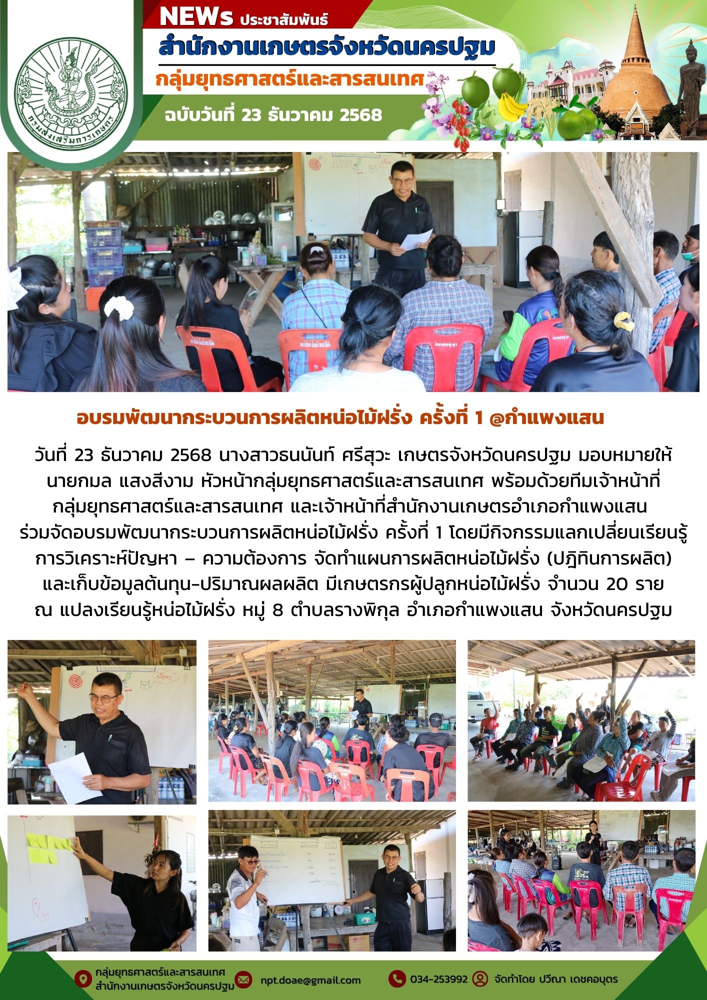 วันที่ 23 ธันวาคม 2568 นางสาวธนนันท์ ศรีสุวะ เกษตรจังหวัดนครปฐม มอบหมายให้