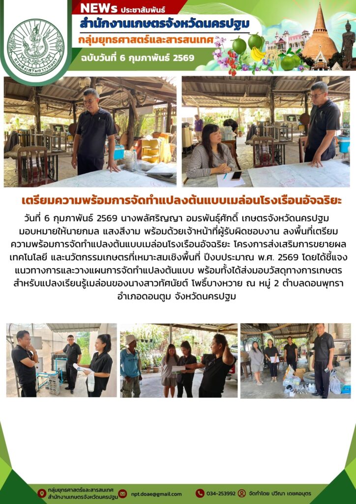 วันที่ 6 กุมภาพันธ์ 2569 นางพลัศริญญา อมรพันธุ์ศักดิ์ เกษตรจังหวัดนครปฐม