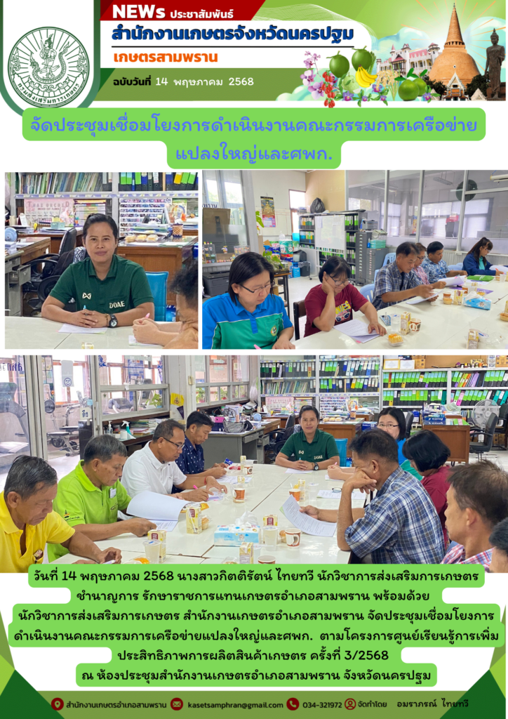 ร่วมจัดประชุมเชื่อมโยงการดำเนินงานคณะกรรมการเครือข่าย ศพก. และแปลงใหญ่ ระดับอำเภอสามพราน ครั้งที่ 3/2568 ณ ห้องประชุมสำนักงานเกษตรอำเภอสามพราน อำเภอสามพราน